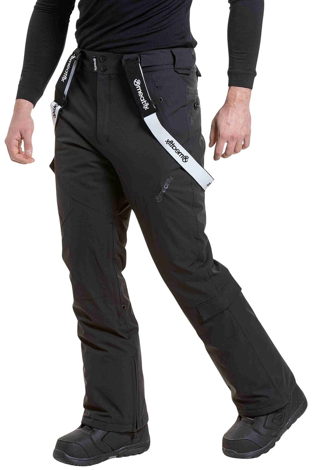 Pánske zimné zateplené nohavice Meatfly Ghost - udržia vás v suchu a pohodlí vďaka 15 000 mm nepremokavosti, priedušnosti 10 000 g/m²/24h a podlepeným švom. Praktické odnímateľné šle, vetranie na nohaviciach a elastické vnútorné nohavice s polstrovaním vám zabezpečia maximálne pohodlie. Množstvo vreciek vrátane vreciek na zips a gombík schová všetko potrebné a zipsy na predĺženie nohavíc uľahčujú nosenie cez topánky.